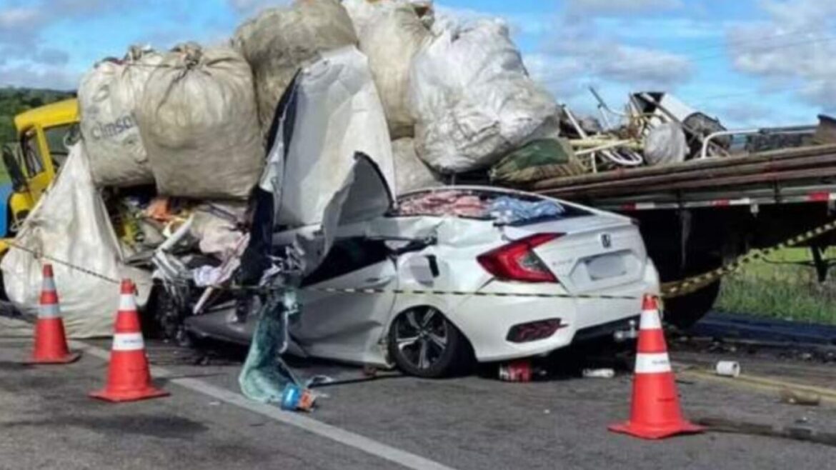 Quatro pessoas morreram em um grave acidente na quarta-feira (10), envolvendo um carro e um caminhão carregado de material reciclável, na BR-116, entre os municípios de Poções e Planalto, na região sudoeste da Bahia.