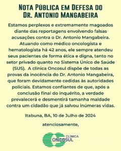 NOTA DA CLÍNICA ONCOSUL DEFENDE MÉDICO; VEJA