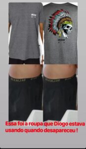 Essa foi a roupa que Diogo saiu de casa no dia 31/7/2023 por volta das 12:00hrs;