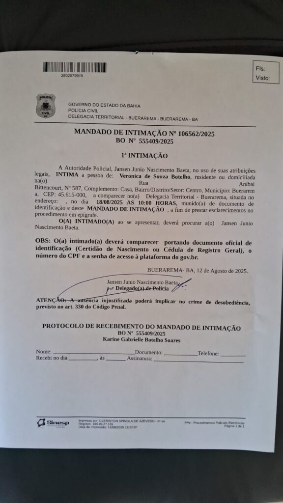 A fala de Botelho, ao insinuar que poderia ter dado “um fim” na própria irmã há anos, configura uma ameaça direta e deixa claro o grau de risco que Verônica Botelho e sua filha Kaline Gabriela enfrentam.