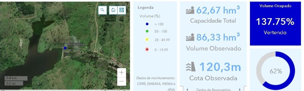 Confira a última medição de volume da barragem, registrada no dia 25/01/2024.