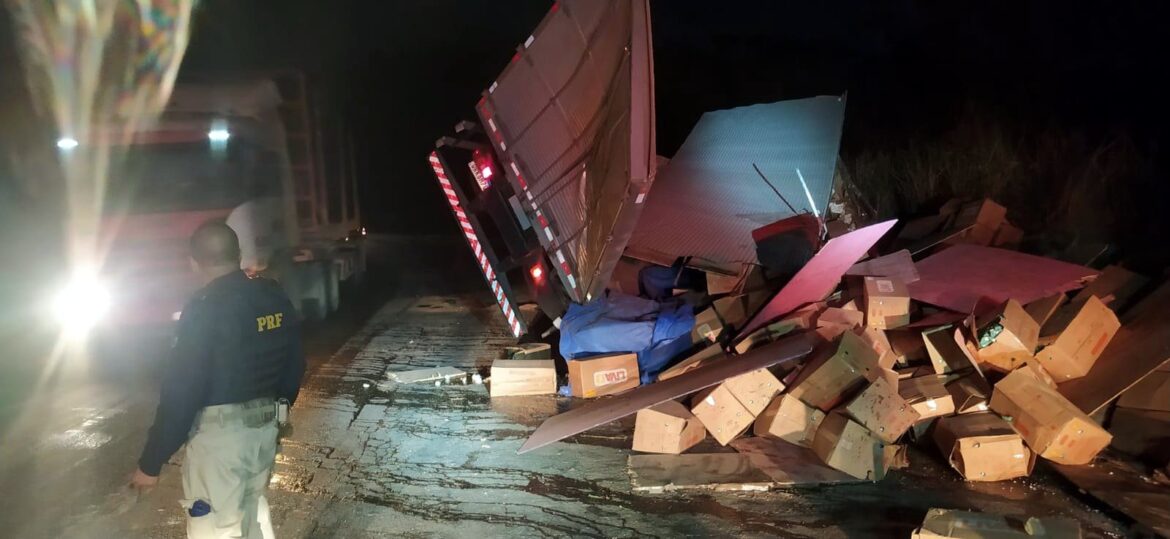 Segundo a Polícia Rodoviária Federal, o condutor suspeita que os freios do veículo falharam em uma descida. O profissional foi levado para o Hospital Regional com suspeita de fratura em uma perna.