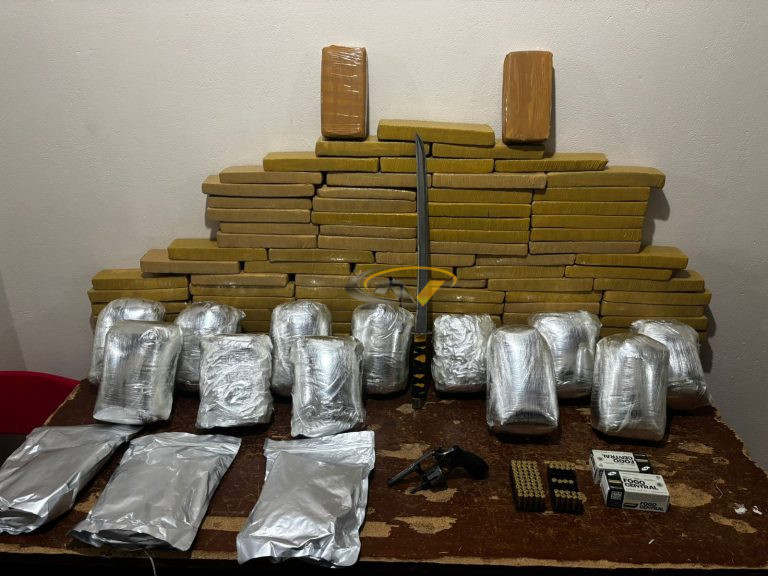 Ao averiguar denúncia de tráfico de drogas e porte ilegal de arma de fogo, as equipes localizaram um indivíduo que, ao perceber a aproximação policial, evadiu, abandonando os materiais. Durante a varredura no local, foram encontrados 82 kg de maconha prensada, 12 kg de maconha tipo gold, 2 kg de crack, e cerca de 4 kg de cocaína, um revólver calibre 32, 74 munições calibre 38 e uma espada.