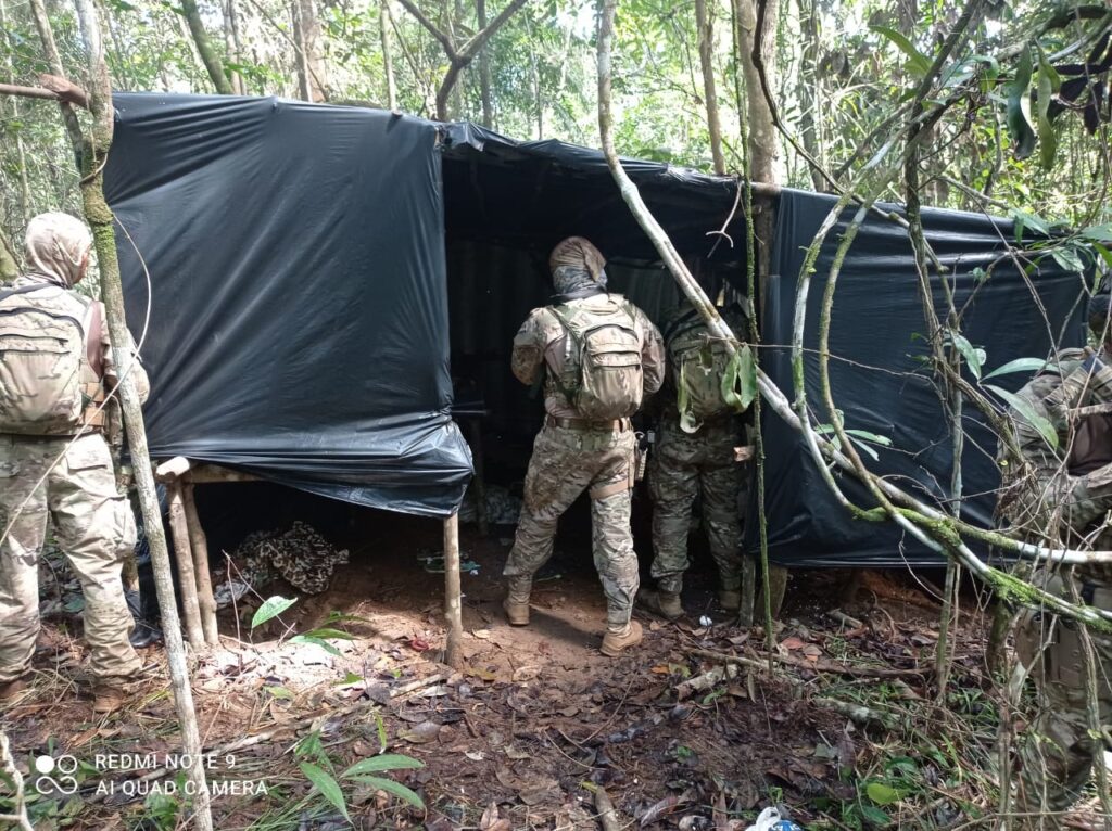 De acordo com o comandante da unidade especializada, major Clédson Conceição, o esconderijo foi localizado em uma área de mata. “Fazíamos diligências em locais indicados como acesso de criminosos e, nessas buscas, localizamos o acampamento com armas e drogas”.