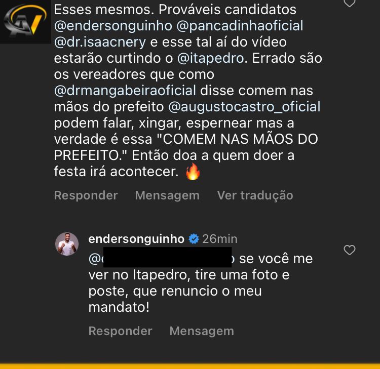 ItabunaNotíciasPolíticaSe você me ver no ItaPedro, tire uma foto e poste, que renuncio o meu mandato; disse Guinho nas redes sociais Por amarelinhoitabuna junho 29, 2023 junho 29, 2023 Confira a resposta de Guinho, em um comentário de um seguidor em nosso Instagram; View this post on InstagramA post shared by Amarelinho Itabuna (@amarelinhoitabuna) Compartilhe nas redes sociaisEscreva um comentário Cancele a respostaSalvar meus dados neste site. Δ