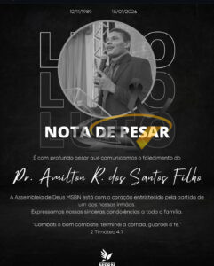 A notícia de sua morte causa profunda dor, tristeza e comoção entre familiares, amigos e irmãos na fé. Ficam aqui as mais sinceras condolências, com orações para que Deus conforte o coração da pastora Carleane Santos Brito, dos filhos e de todos que sofrem com essa perda irreparável.