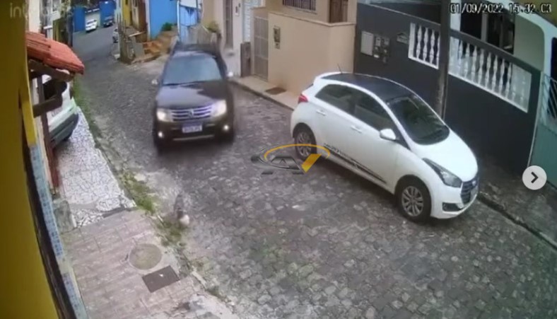 Uma câmera de segurança flagrou o momento em que um cãozinho da raça poodle foi atropelado e morto, nesta quinta-feira (1º), no Outeiro, em Ilhéus.